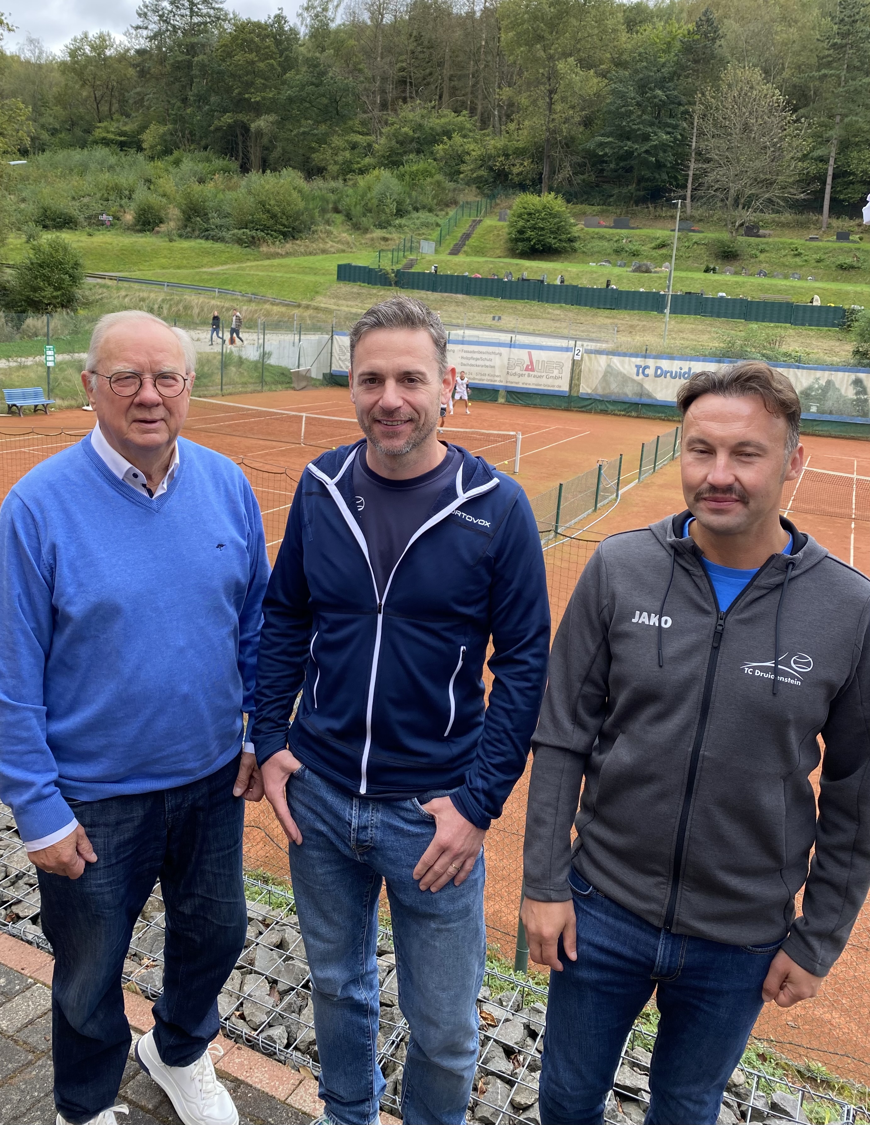 Freude, Spaß und Unterhaltung waren die Voraussetzungen, bei denen sich gleich 14 Mannschaften angemeldet hatten zum TC-Open 2024 am Samstag den, 14.09.24 beim Tennis Club Druidenstein in Kirchen-Herkersdorf. Auf Einladung des Vorstandes (TC-Druidenstein) Patrick Krah und Julian Meinert verschaffte sich der Sportbeauftragter der Verbandsgemeinde Kirchen-Sieg Klaus-Jürgen Griese einen Eindruck des Vereins und der Ausrichtung des alljährlichen Hobby Turniers. Dies ist eines der letzten Aktionen, welche wir auf der Tennisanlage durchführen, bevor man den Herbst einläutet, so die Aussage des Vorsitzenden Patrick Krah. Der heutige Zeitraum ist gespickt von 11:00 h – 18:00 h danach erfolgt die Siegerehrung durch den Vorstand bei denen die ersten 6 Mannschaften prämiert werden. Wir haben an diesen Tag viel Freude und Spaß untereinander, denn es geht hier nicht um Punkte, sondern alle die hier teilnehmen sind am Schluss Gewinner. Auch wenn wir nur 2 Plätze besitzen, sind wir schon stolz auf unsere Anlage und dem dazugehörigen Vereinsheim. Selbst der junge Nachwuchs rückt bei uns seit einem Jahr wieder in den Vordergrund, daher sind wir froh darüber, dass Katharina Kreuz und unser Trainer Holger Zöller sich den Nachwuchs angenommen haben. Der Sportwart Erkan Tsakir fügte hinzu: die Kinder haben wieder Freude und Spaß beim Tennisspielen, so wie auch die heutigen Freizeit Tennisspieler/innen beim Hobby Turnier 2024. Im Gespräch mit dem Sportbeauftragten und Patrick Krah wurde der Nachwuchs nochmals herausgestellt, denn die Kindern haben auch in den Wintermonaten die Möglichkeit Sport zu betreiben, da wir das Glück der Druidenhalle besitzen welche gleich nebenan ist. Die Kassiererin Alexandra Stinner dankte nochmal allen helfenden Händen bei dieser Aktion (TC-OPEN 2024) denn auch wir benötigen jeden Cent, um den Verein weiterhin in gesunden Bahnen zu führen. Nach der Siegerehrung fand in geselliger Runde der Ballaustausch statt mit einem kühlen Blonden der Erzquellbrauerei. Zurzeit hat der Verein TC Druidenstein 106 Mitgliedern und man tut sich schon schwer die laufenden Kosten damit zu decken. Gerne erfreuen wir uns über weitere Vereins- Mitglieder ob aktiv oder passiv.